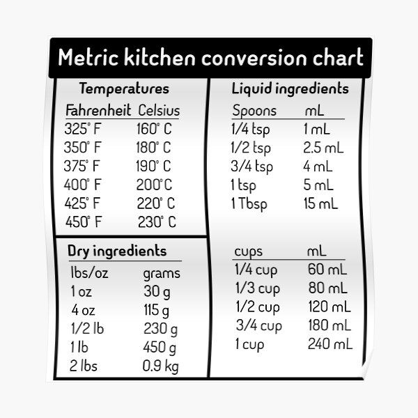 Metrische Kuchenumrechnung Poster Von Fadhila Redbubble
